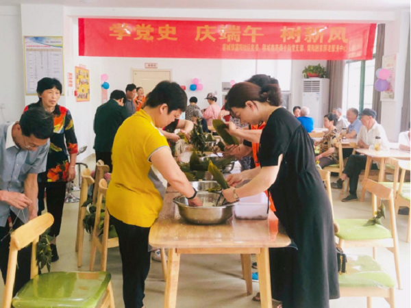 6月11日上午8點半,支部黨員與社區(qū)工作人員把提前準備好的糯米、紅豆、紅棗、粽葉等物料搬進養(yǎng)老中心,接著大家熱火朝天地開始包起了粽子,很快三角形、喇叭形、長條形……各式各樣漂亮的粽子就這樣誕生了。隨后,支部黨員與老人們做了兩個小游戲——夾花生米和盲人吃香蕉,整個活動現(xiàn)場其樂融融,現(xiàn)場一片歡聲笑語。在游戲結(jié)束后,支部黨員向老人們講述了黨史小故事,“溫黨史 話初心”,將老人們帶回那個激情澎湃的年代,重溫艱難歲月中的共產(chǎn)黨人的堅守和情懷。端午粽飄香,粒香沁人心。清香的粽葉里包的不僅僅是軟糯的米、棗、豆,更多的是對老人的一片心意。通過包粽子迎端午的活動,讓老人感受到了溫馨的節(jié)日氣氛和社會大家庭的濃濃關(guān)愛。
