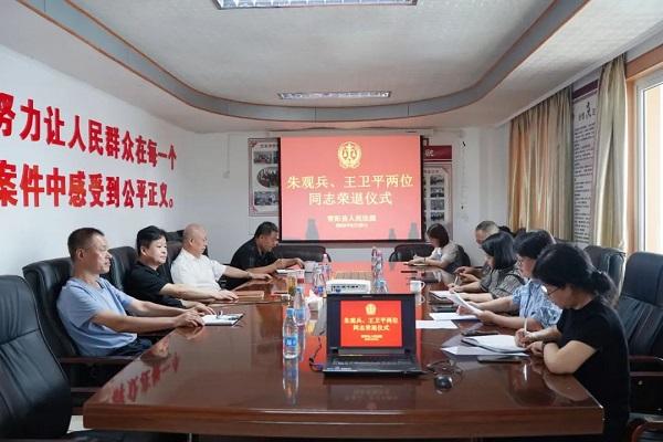 為增強(qiáng)退休干部的職業(yè)榮譽感和歸屬感,8月29日上午,青陽法院黨組為朱觀兵、王衛(wèi)平兩位退休同志舉行榮譽退休儀式,黨組成員、專職審判委員會委員、老干部支部書記參加儀式。