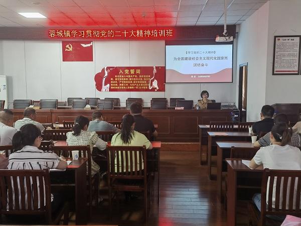 抓思想,強化責任擔當。蓉城鎮(zhèn)堅持把學習宣傳貫徹黨的二十大精神作為全年工作主線,通過開展集中輪訓和培訓,全方位多層次開展宣傳宣講,不斷涵養(yǎng)黨員干部政治素養(yǎng)和黨性修養(yǎng)。上半年以來,鎮(zhèn)機關、各村(場)、社區(qū)共舉辦培訓班28次,培訓黨員干部2700余人,推動黨的二十大報告明確的各項目標任務在蓉城鎮(zhèn)落地生根。